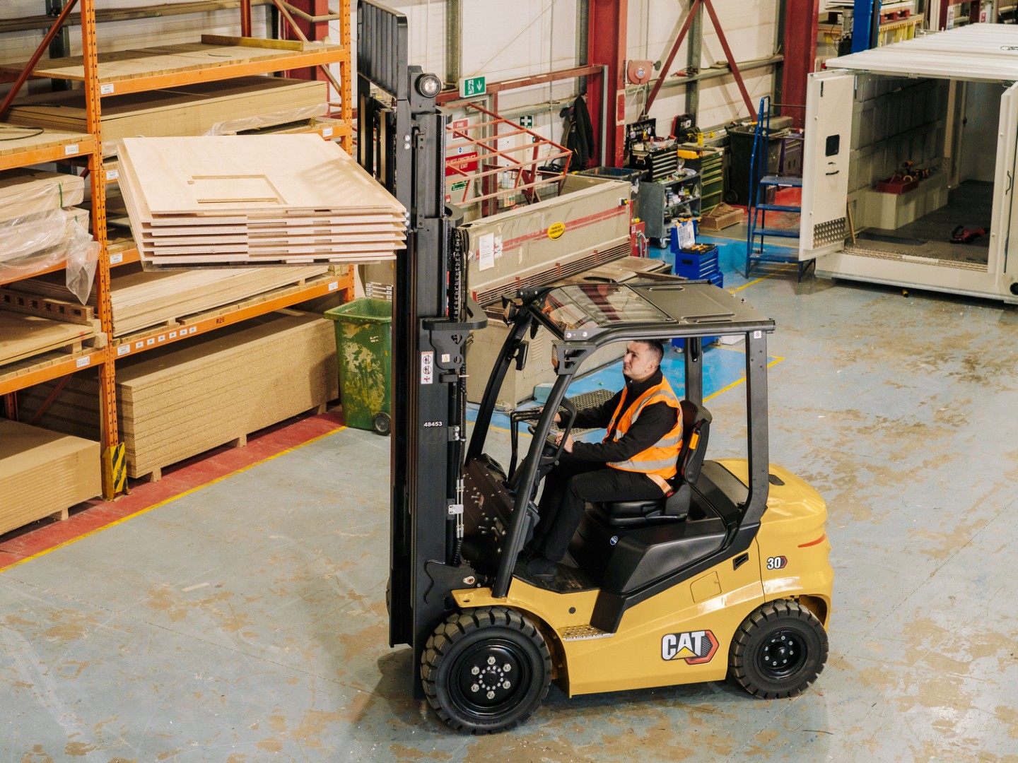 - Задний синий световой индикатор проецируется на пол, предупреждая пешеходов о приближении погрузчика при движении назад.